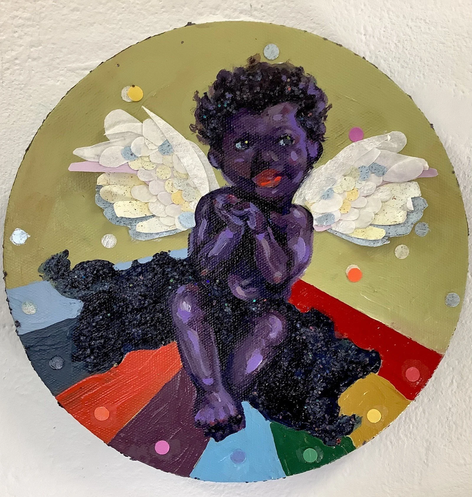 I am creating mixed-media paintings that explore the circulation of the Black image through Black literature and Black Americana Memorabilia. The recurring themes throughout this body of work include Black womanhood, American history, and the supernatural. I am collaborating with Toni Morrison's novels and mammy figurines to create these works. Between literature and memorabilia, the link I found is magic. Morrison’s novels feature moments of supernatural or magical happenings, and the Mammy figurines, specifically Aunt Jemima, have her magical pancakes. These works explore timeline, commodification, and desire.